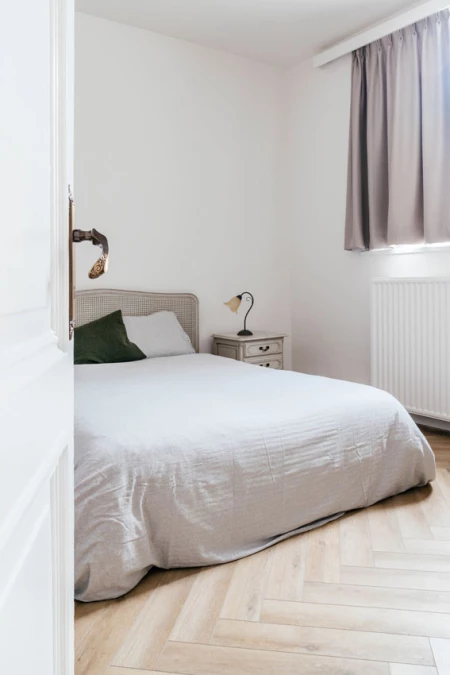 Después de un año de reformas, la pareja pudo mudarse a la casa de sus sueños. El padre de An trabajó en la construcción durante muchos años, lo que explica el corto plazo de renovación. An: «Nuestro proceso de renovación duró mucho menos gracias a los contactos y a la experiencia de mi padre. No solo nos puso en contacto con los proveedores y profesionales adecuados, sino que también calculó, por ejemplo, cuántos radiadores necesitábamos instalar para calentar nuestra casa. Lo que para nosotros era una montaña, para él era un grano de arena. Él tiene una mentalidad práctica, a nosotros nos tocó la estética. Naturalmente, apoyó totalmente nuestra elección del Parquetvinyl: bonito y fácil de mantener. (risas)»