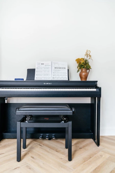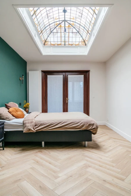 La elección de Parquetvinyl se hizo gracias a la empresa de construcción Van Pelt de Zoersel: allí fue donde la pareja conoció la belleza, la facilidad y las diferentes posibilidades (¡como el diseño en espiga!) de los suelos de vinilo. An pensó que el hecho de que Parquetvinyl también sea belga fue un punto a favor.