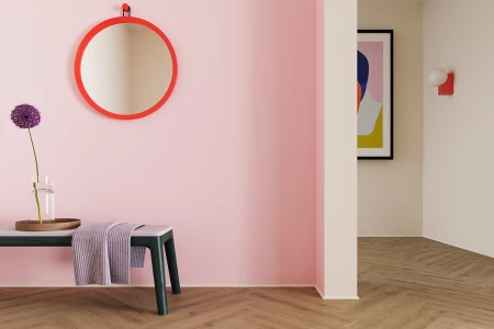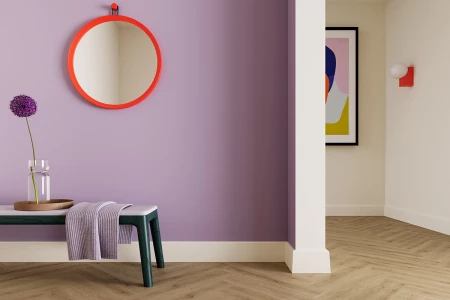 Los rodapiés estándar pintables de Parquetvinyl están disponibles en dos tamaños: el conocido de 8 cm y el ligeramente inferior de 6 cm, que aporta un aspecto más moderno y minimalista. ¿Prefieres acabar tu pared con un color llamativo, una técnica de pintura especial como la pintura a la cal o el aspecto de hormigón, o un elegante blanco tráfico? Puedes acabar tu pared con estos rodapiés sin problemas.